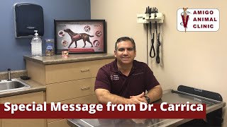Choose curbside pet pick up while you wait in the car, or wait in your car until an exam room is sanitized and ready for the next patient. Only 1 family member per pet(s) is allowed into the exam room. If your children must come with you, we request you all wait in the car while we bring your pet into the clinic. Please text or call the number on the front door when you arrive. We understand it is hard to not be with your pet. Please understand we have an ethical and moral obligation to your pet. We treat them like our own and do not like to see them stress and in fear.